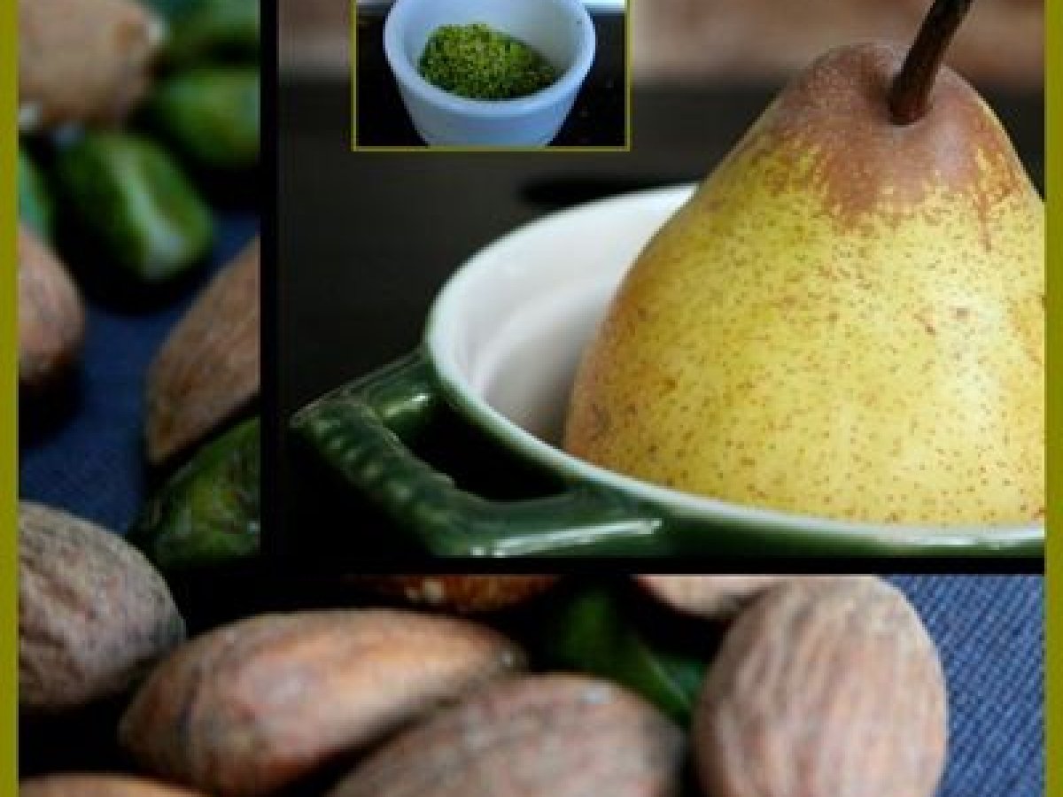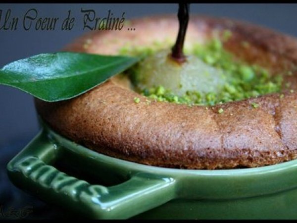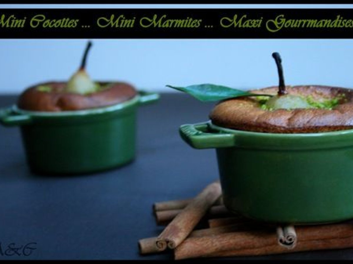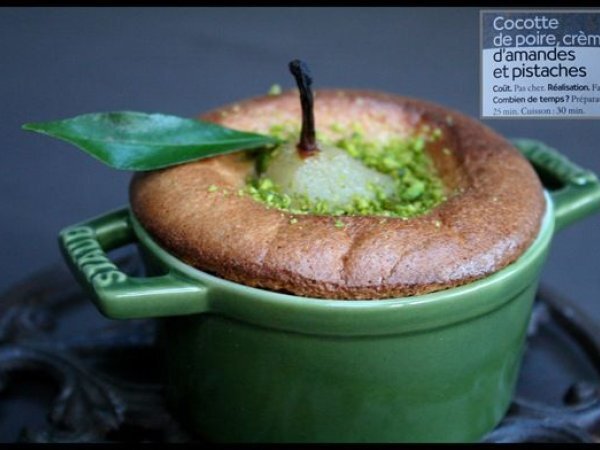 Mini cocottes de poire pochees epicee, sur lit d'amande et pistache ...