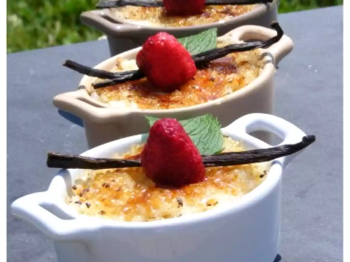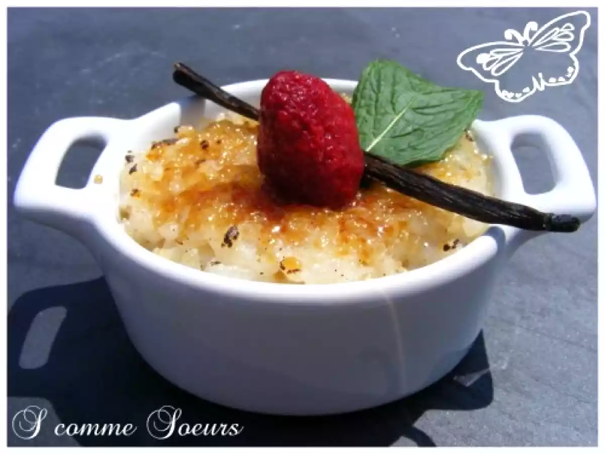 Mini-cocottes : riz au lait façon crème brûlée PrécédentSuivant Dessertfacile25 min Envoyer cette recette à un ami Imprimer cette page Poser une question à l'auteur Publier votre photo de cette recette Ingrédients 3 150 g de riz rond 75 cl de lait 60 g de sucre 1 gousse de vanille 50 g de sucre roux Décoration : framboises feuilles de menthe
