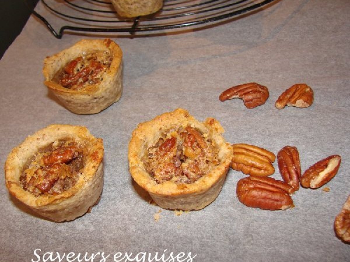 Ces mini-tartelettes mettent en valeur la saveur et la texture des noix de pécan présentes dans la pâte sablée et dans la garniture croquante. J'ai trouvé cette recette dans le livre des touts petits gâteaux de Martha Stewart, c'est un régal pour les amateurs de noix de pécan:)