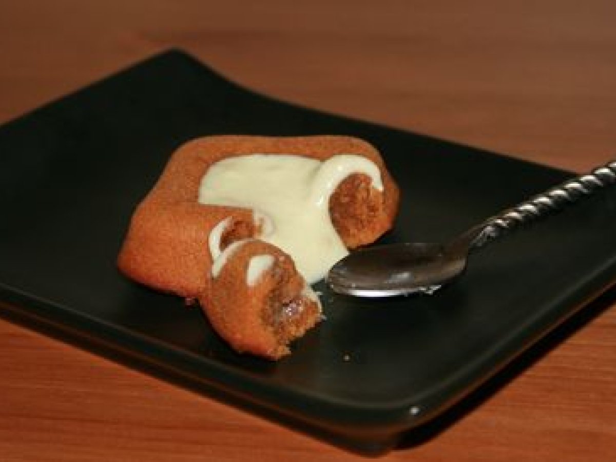 Moelleux au salidou, et coulis d'amandes au thé vert matcha