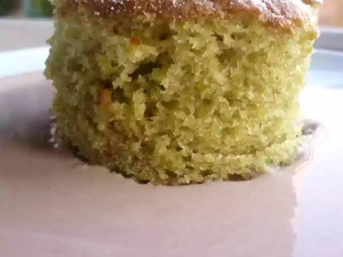 Moelleux pistache, poudre vanille et crème anglaise à la framboise