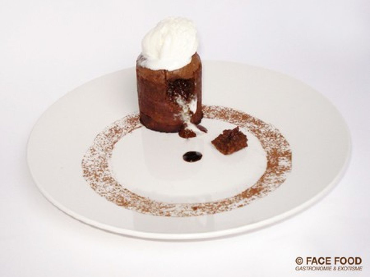 Mon biscuit de chocolat coulant ; crème double glacée coco et café leger