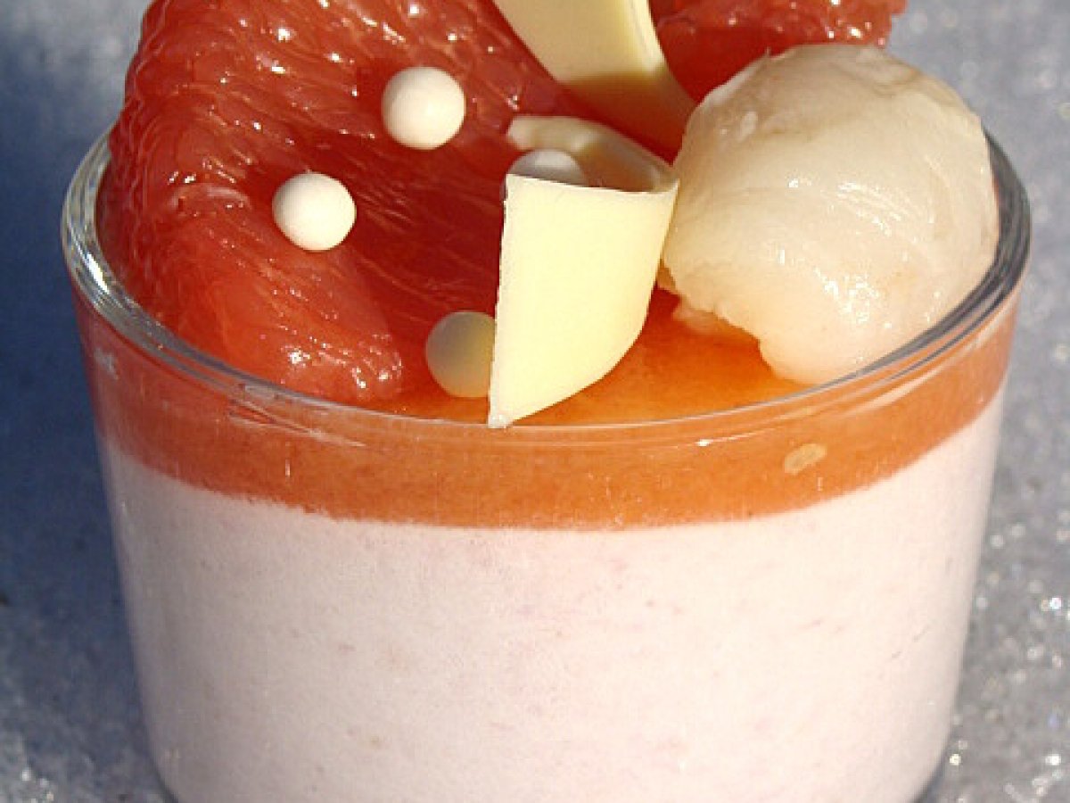 Mousse de litchis et pamplemousse votez maintenant PrécédentSuivant Dessertfacile30 min Envoyer cette recette à un ami Imprimer cette page Poser une question à l'auteur Publier votre photo de cette recette Ingrédients 10 Pour la mousse: 400 g de litchis en boîte 2 blancs d’oeuf 150 ml de crème liquide entière 70 g de sucre en poudre 4 g de gélatine en feuilles 1 cuillère. à soupe de coulis de framboises (facultatif) : c’est juste pour colorer légèrement la mousse Pour le gélifié: 300 ml de jus de pamplemousse (j’ai utilisé des pamplemousses roses) 2/3 d’une c. à café d’agar-agar Pour le décor 1 pamplemousse décor en chocolat blanc (facultatif)