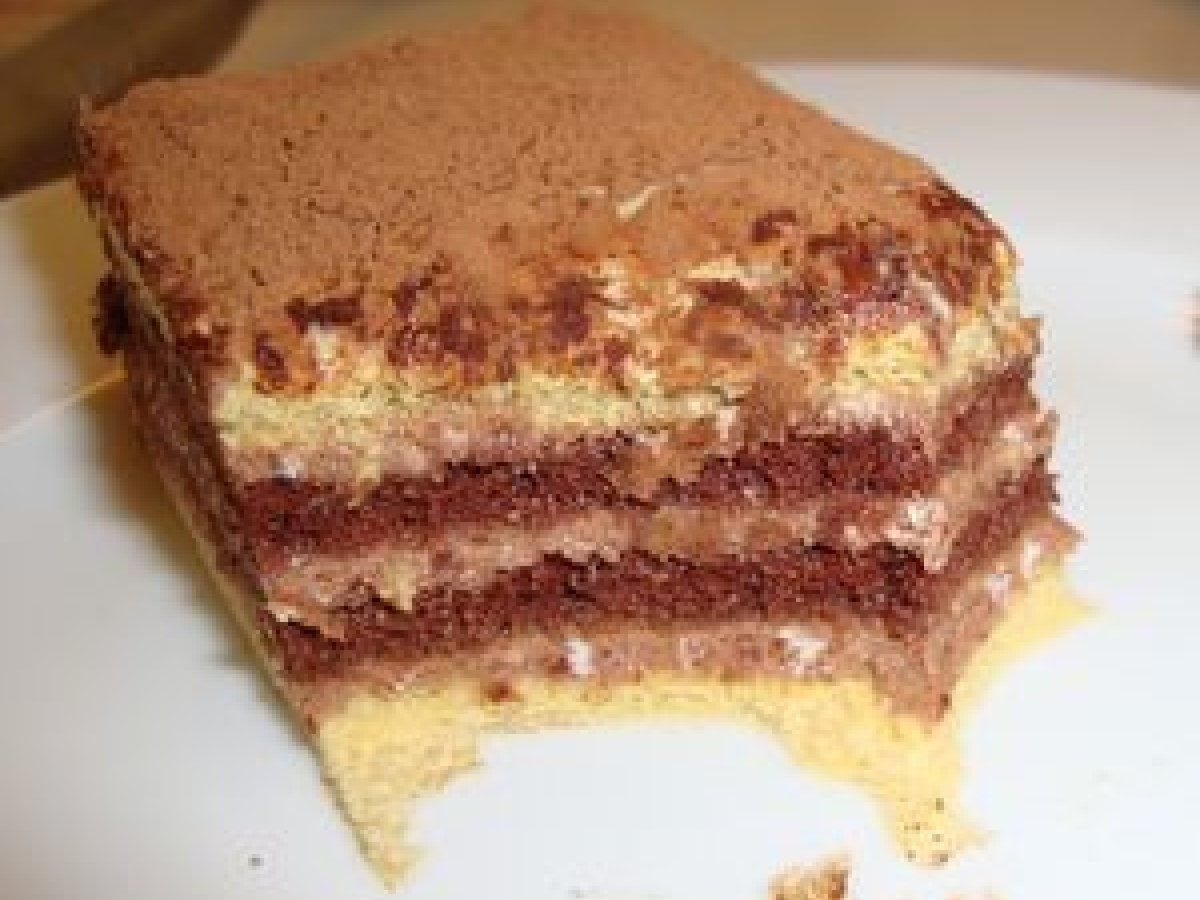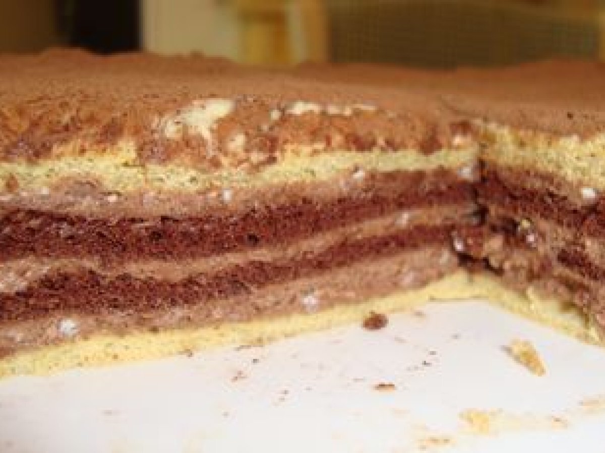 - Superposez les génoises vanille et chocolat, découpez très proprement les bords afin d'obtenir des rectangles réguliers. Découpez-les ensuite en 2 afin d’obtenir 2 génoises vanille et 2 génoises chocolat de même taille.