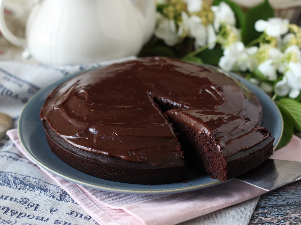 Verser le glaçage encore chaud sur le gâteau.