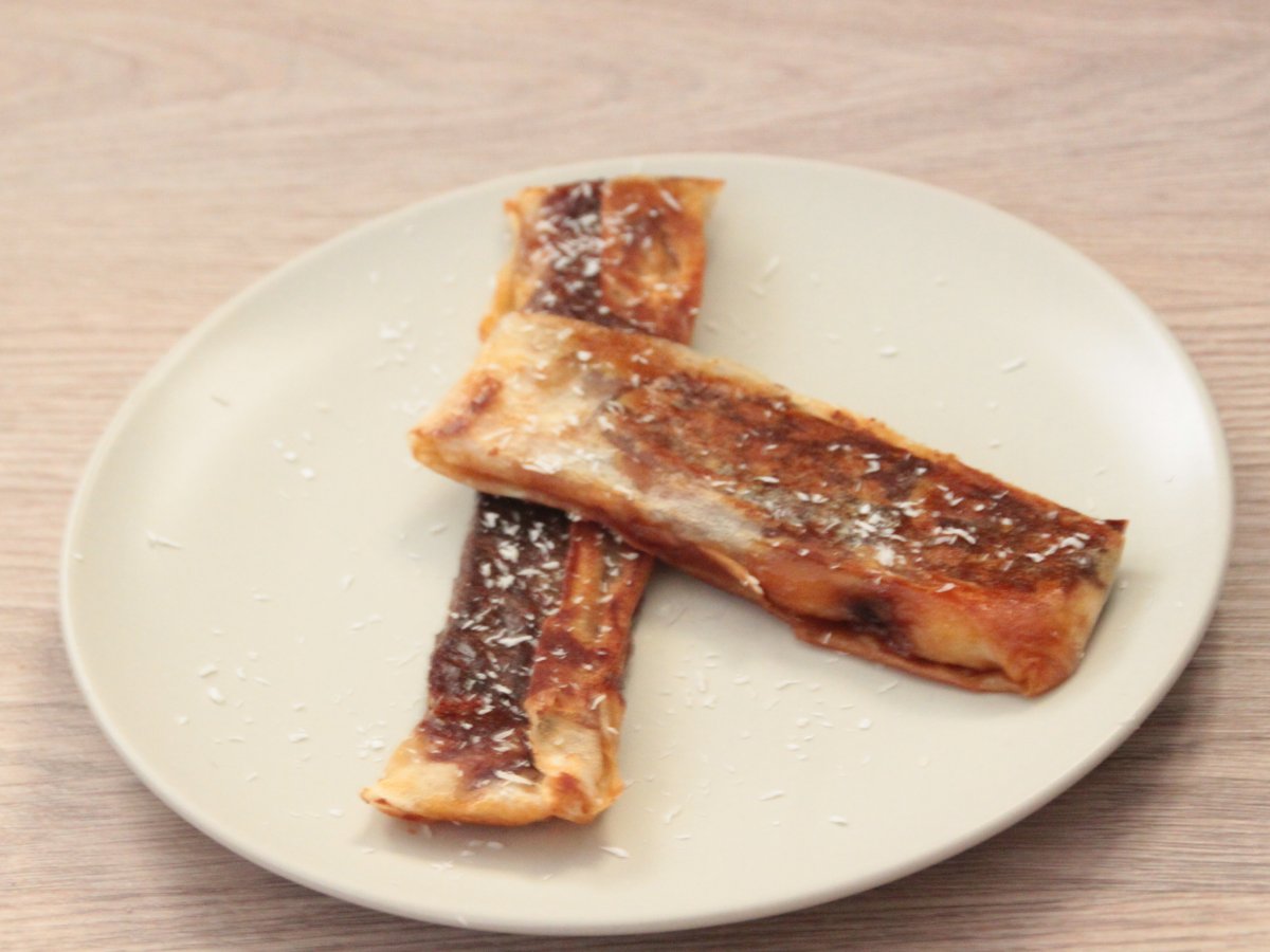 Un dessert gourmand, original et facile à réaliser ! Un nem à la banane au chocolat et à la noix de coco.