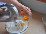 Dans 2 bols différents, casser les oeufs et séparer les blancs des jaunes. A l'aide d'un batteur électrique, blanchir les jaunes avec 30 grammes de sucre dans l'un des saladiers.