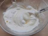Incorporer les blancs et miel au mélange jaunes d'oeufe et sucre et mélanger délicatement pour avoir une préparation homogène.