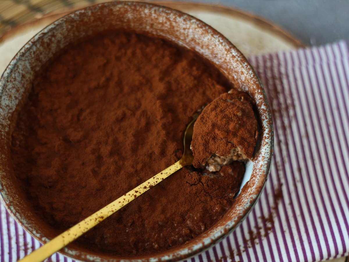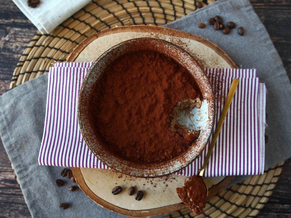 Overnight oats goût tiramisu, le petit déjeuner parfait au café et cacao!