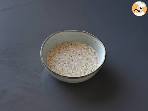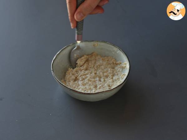 Mélanger les flocons d'avoine et le lait dans un bol et réhydrater les flocons en mettant le tout au micro-ondes pendant 2 minutes.