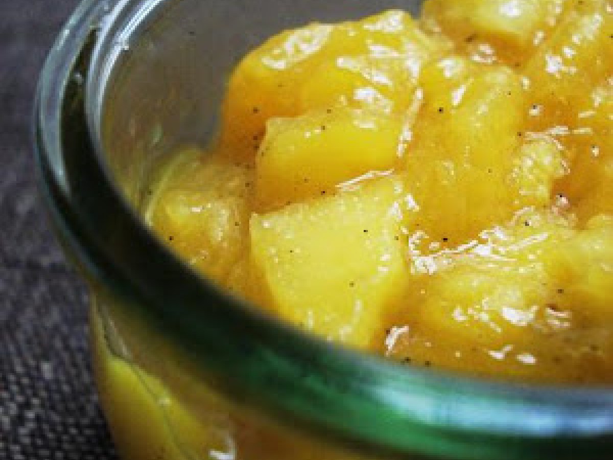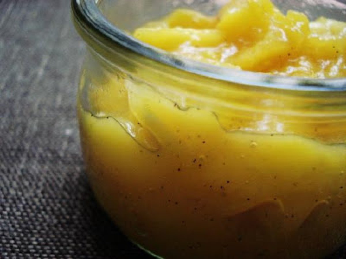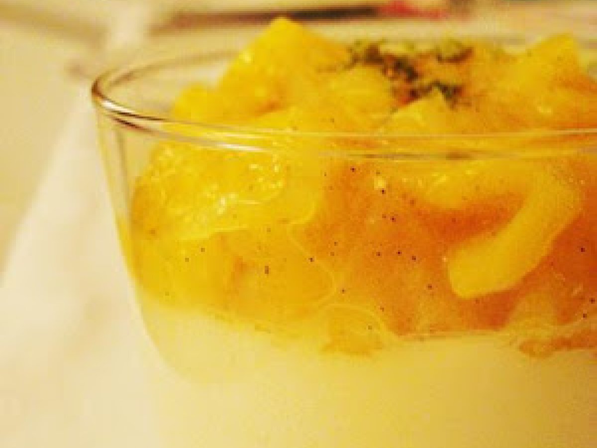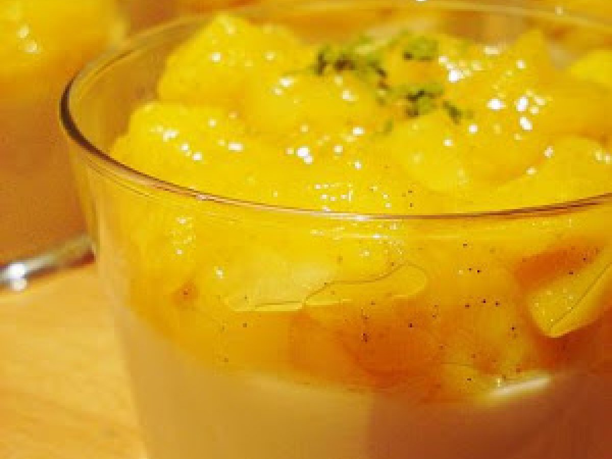 Panacotta au lait de coco, compotée de mangue à la vanille