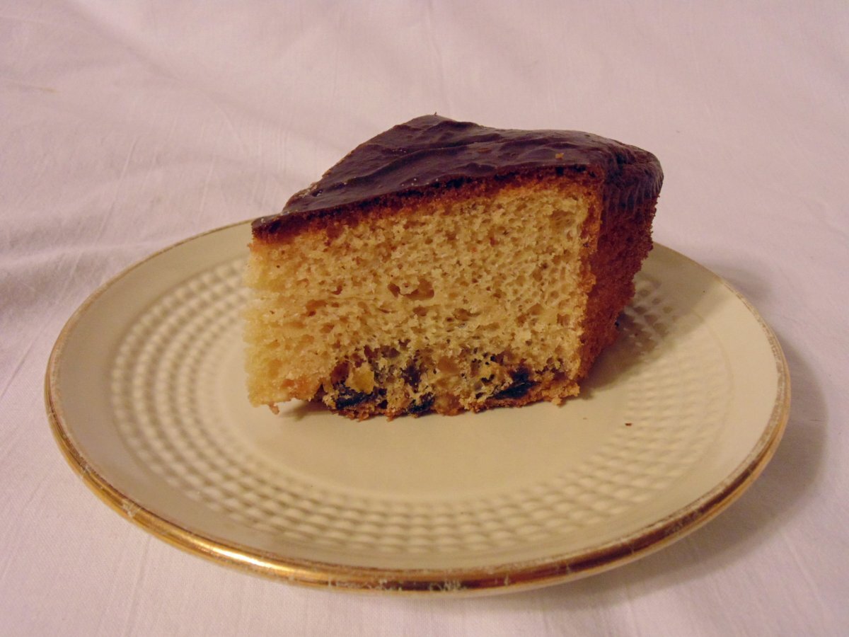 - La veille, coupez les écorces d’orange en dés et mettez les à tremper dans l’eau avec le rhum et les raisins secs.