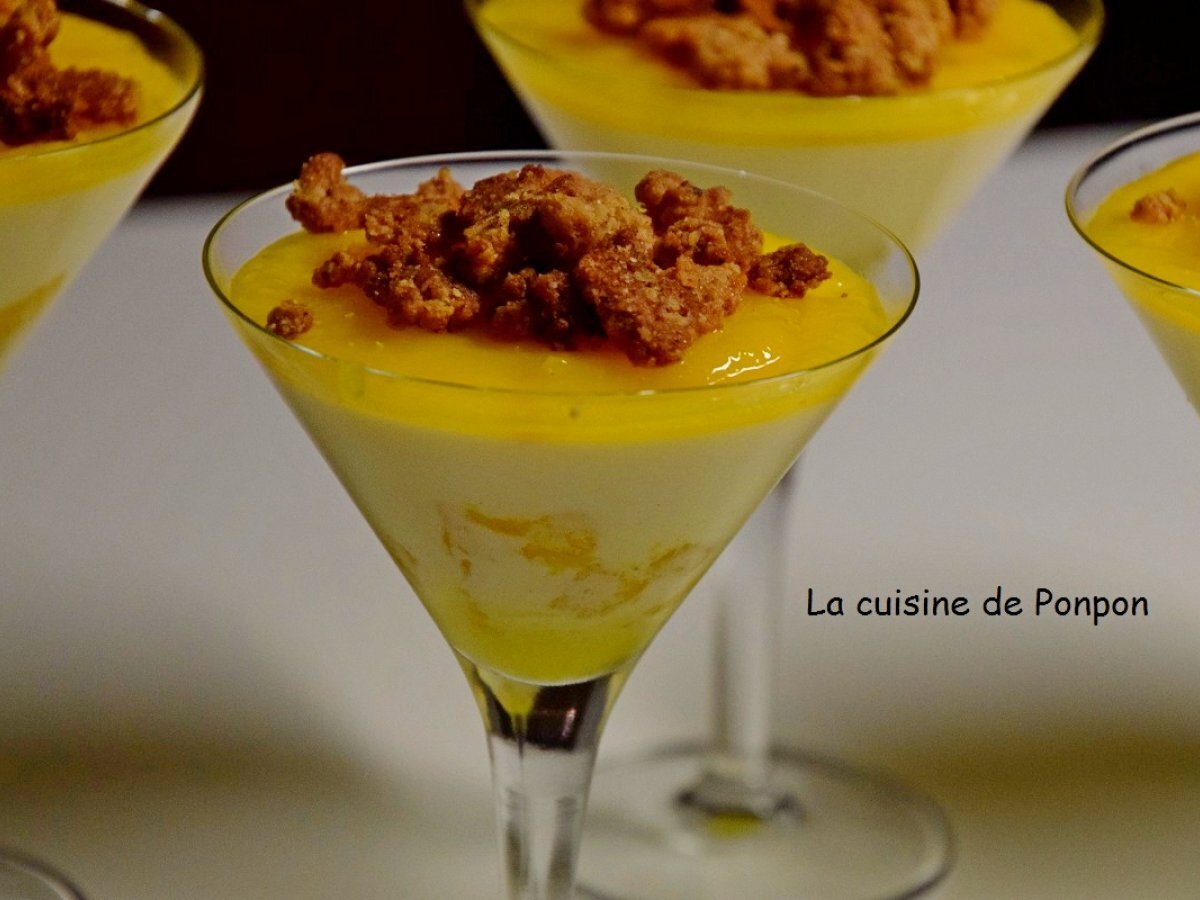 Panna cotta à la mangue garnie d'un crumble d'avoine
