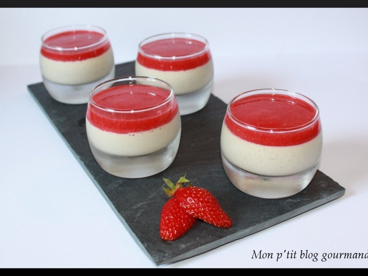 Panna cotta à la pistache et coulis aux fraises Dessertmoyen25 min228 Kcal Envoyer cette recette à un ami Imprimer cette page Poser une question à l'auteur Publier votre photo de cette recette Ingrédients 6 Voici la recette pour 6 petites verrines : > 25 cl de crème fraîche liquide > 15 cl de lait demi écrémé > 2 cuillères à soupe de cassonade > 1 feuille et demi de gélatine > 25 g de pâte de pistache > 250 g de fraises bien parfumées > 40 g de sucre > Le jus d un demi citron Coût estimé: 4.84Euros€ (0.81€/part)