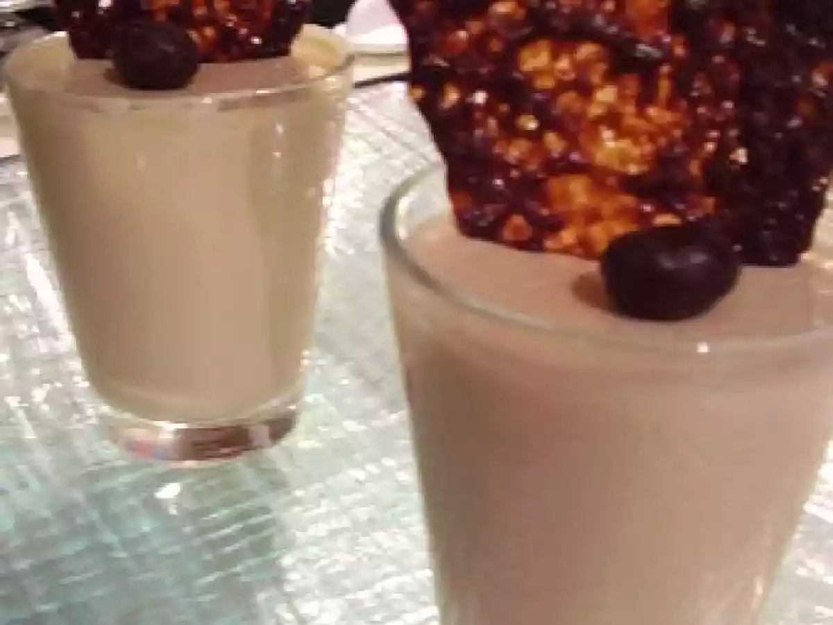 Panna cotta au bailey's. votez maintenant PrécédentSuivant Dessertfacile55 min Envoyer cette recette à un ami Imprimer cette page Poser une question à l'auteur Publier votre photo de cette recette Ingrédients 2 40 cl de crème UHT 1 cuillère à café d'Hermesses 1 cuillère à café de café soluble 4 cuillères à soupe de Bailey's 2 gr d'agar agar 4 grains de café au chocolat noir Commerce équitable