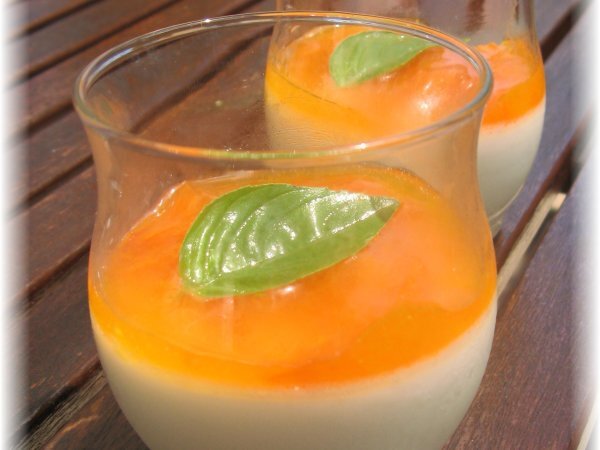 Panna cotta chocolat blanc et coulis d'abricot... Dessertfacile2 h 30 m319 Kcal Envoyer cette recette à un ami Imprimer cette page Poser une question à l'auteur Publier votre photo de cette recette Ingrédients 4 Pour 4 panna cotta, il vous faut: 250 ml de crème liquide 50 ml de lait 2 feuilles de gélatine (je n'avais plus d'agar-agar...) 50 gr de chocolat blanc 2 abricots 2 cuillères à soupe de sucre 4 feuilles de basilic pour la décoration. Coût estimé: 2.78Euros€ (0.69€/part)