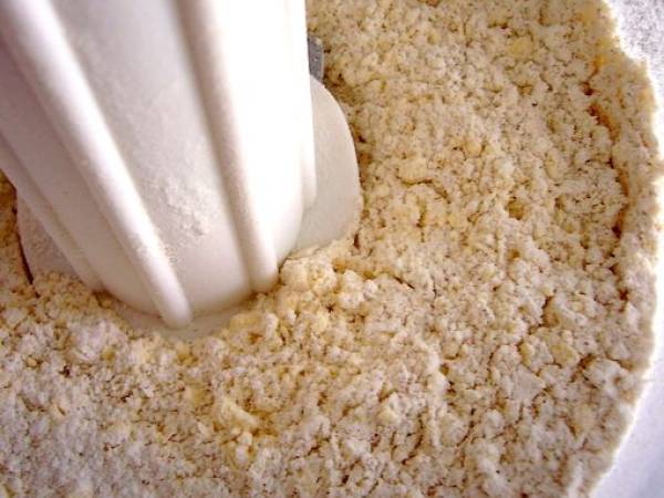 - Dans le bol du robot, verser les farines. Ajouter le sucre puis le beurre coupé en morceaux.