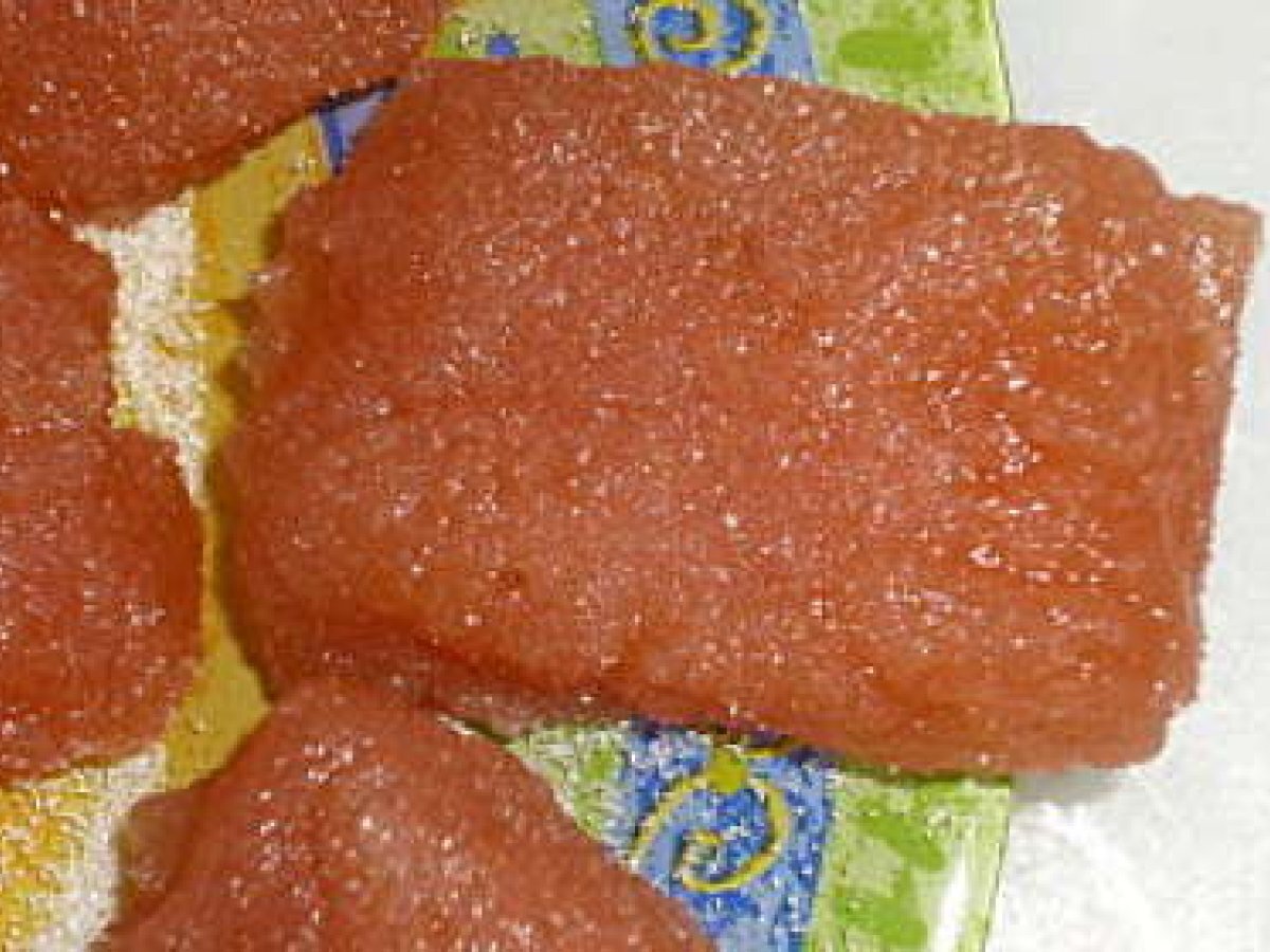 4*tapissez un moule de papier sulfurisé,et étaler la pâte sur 2à 3 cm d'épaisseur.P1010364laissez sécher 24h au moins.une fois durcis couper vos carrés que vous passerais dans le sucre poudre.P1010380
