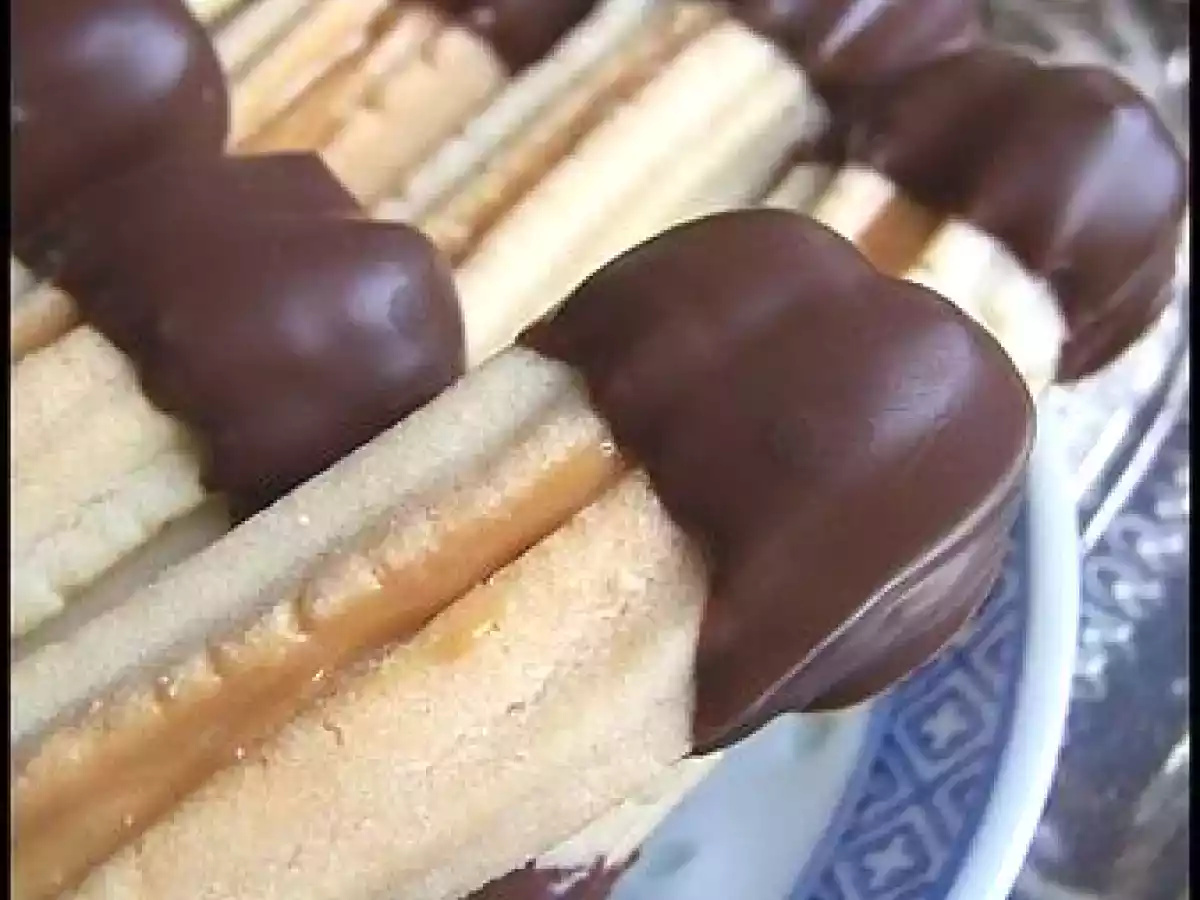Déjà agréable à l’œil, ils le sont également en bouche du fait de leur texture ultra sablée, fragile et très fondante alliant un cœur de caramel de type confiture de laits onctueux et veloutés et des extrémités plongées dans le chocolat noir, c'est vraiment irrésistible!