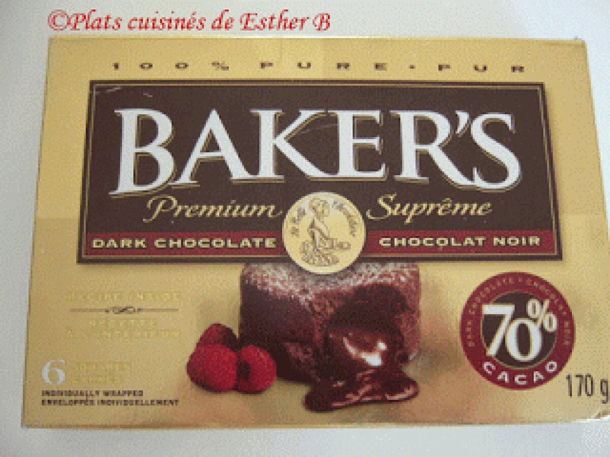 Petits gâteaux fondants au chocolat noir (bonne st-valentin!!) PrécédentSuivant Dessertfacile39 min619 Kcal Envoyer cette recette à un ami Imprimer cette page Poser une question à l'auteur Publier votre photo de cette recette Ingrédients 4 4 carrés de chocolat noir 70 % cacao BAKER'S SUPRÊME (120 g) 1/2 tasse (120 g) de beurre 1 tasse (100 g) de sucre à glacer 2 oeufs 2 jaunes d’oeufs 6 cuillères à soupe de farine 1 cuillère à thé de sucre à glacer 12 framboises fraîches Coût estimé: 2.49Euros€ (0.62€/part)