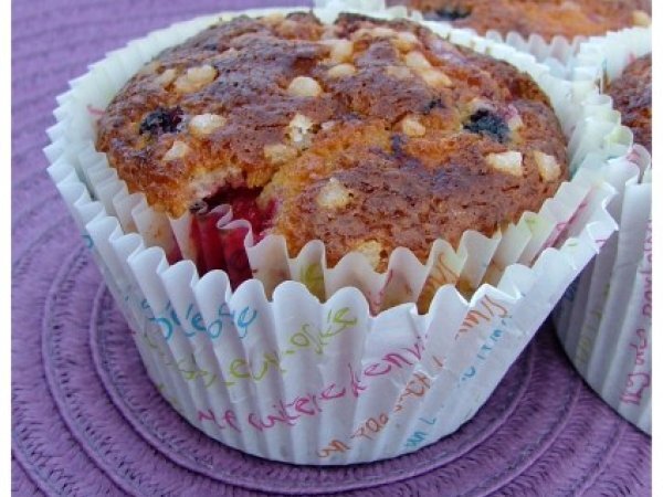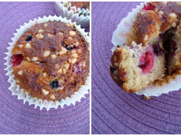 Petits gâteaux moelleux aux bananes & fruits rouges