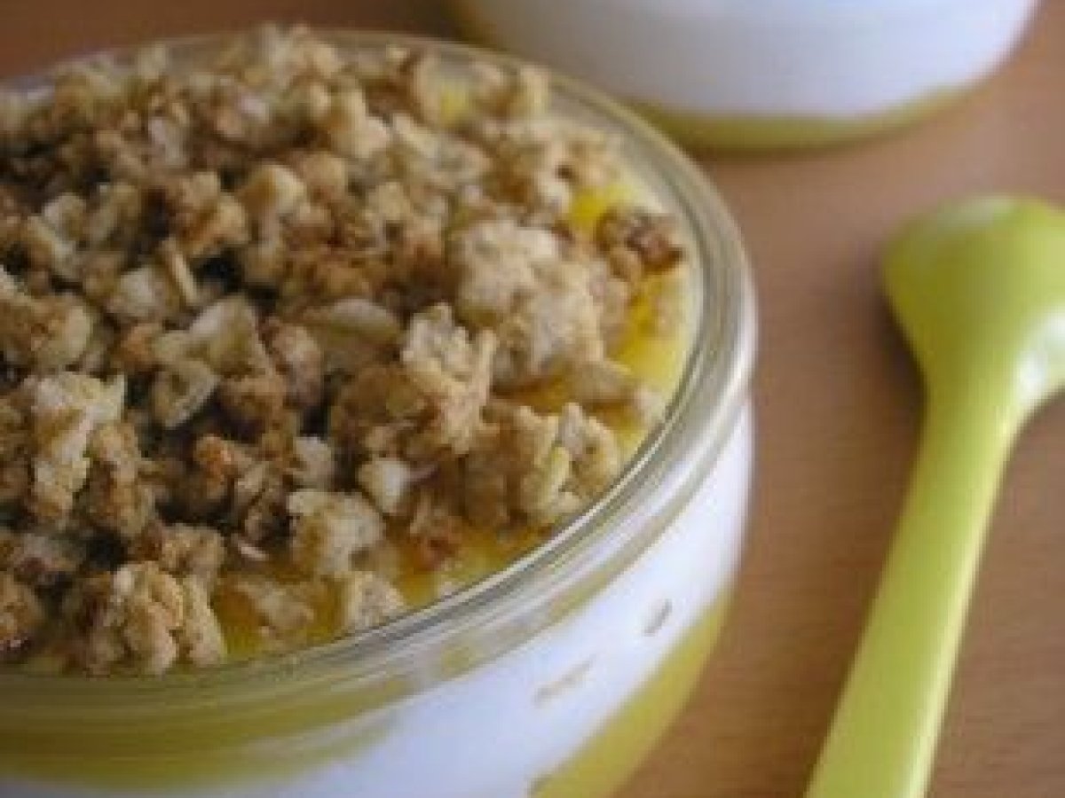 Petits pots de lemon curd et de fromage blanc en crumble Dessertfacile25 min Envoyer cette recette à un ami Imprimer cette page Poser une question à l'auteur Publier votre photo de cette recette Ingrédients 2 Pour la verrine : 180 g de fromage blanc 1 petit pot de lemon curd (soit 8 cuillères à soupe, environ) Pour le crumble : 2 cuillères à soupe de farine 2 cuillères à soupe de flocons d'avoine 1 cuillère à soupe d'amandes grossièrement hachées 1 cuillère à soupe de sucre blond 1 cuillère à soupe de beurre Coût estimé: 1.5Euros€ (0.75€/part)