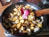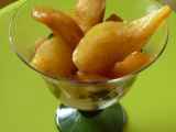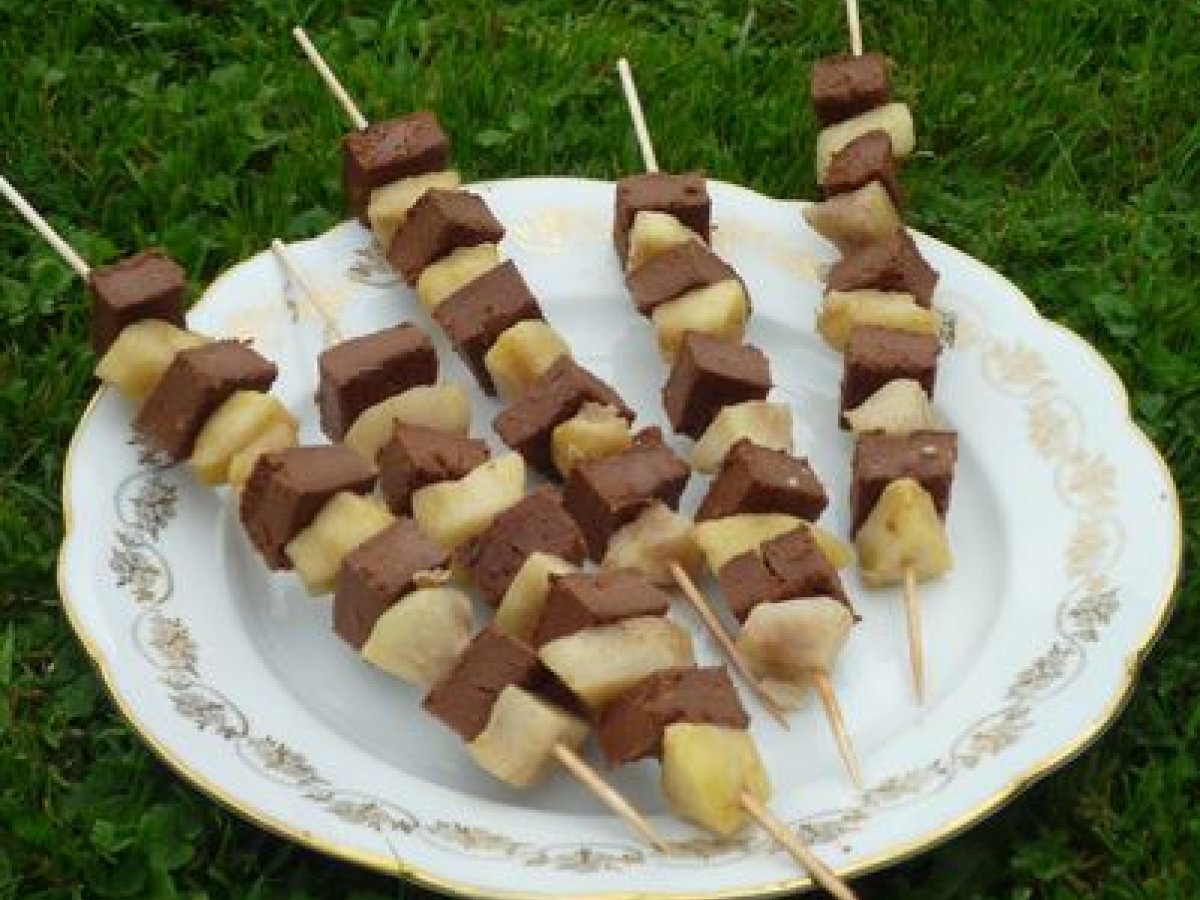 Poêlée pommes / poires aux épices piquées sur brochettes de fondant au chocolat