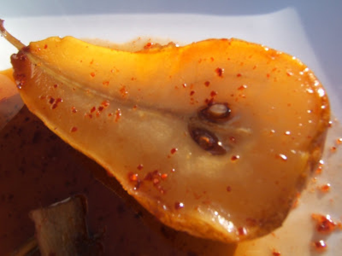 Poires au sirop de gingembre et piment d'espelette PrécédentSuivant Dessertfacile50 min168 Kcal Envoyer cette recette à un ami Imprimer cette page Poser une question à l'auteur Publier votre photo de cette recette Ingrédients 4 4 poires 1 cuillère à café de piment d'Espelette ou de piment doux d'Espagne 1 morceau de gingembre frais 100 g de sucre de canne 50 cl d'eau Coût estimé: 1.43Euros€ (0.36€/part)