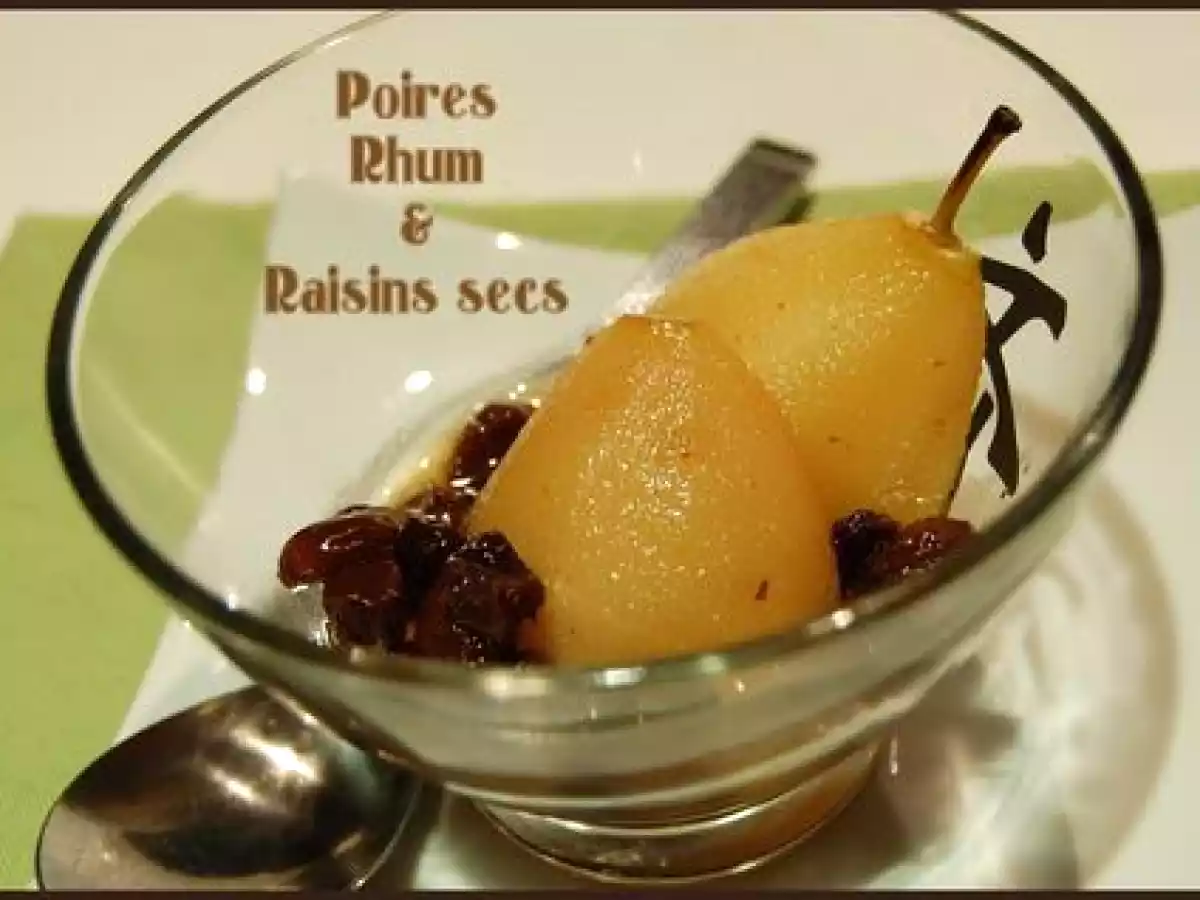 Poires pochées au rhum et raisins secs