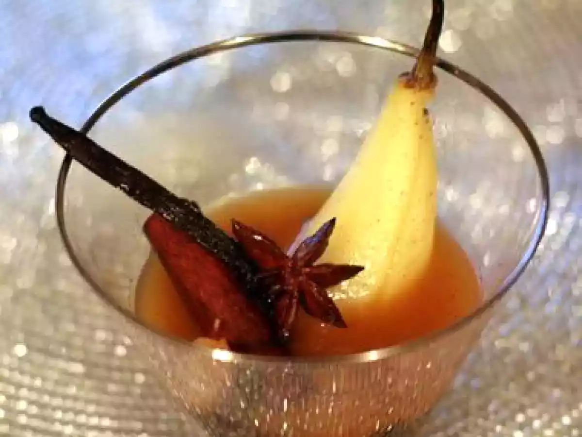 Poires pochées, caramel aux épices d'orient