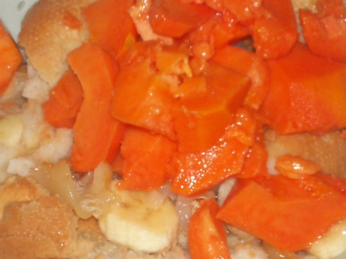 Pudding à la papaye PrécédentSuivant Dessertfacile1 heure Envoyer cette recette à un ami Imprimer cette page Poser une question à l'auteur Publier votre photo de cette recette Ingrédients 4 500 g de pain rassis, 2 ufs, 150g de sucre de canne, 4 CAS