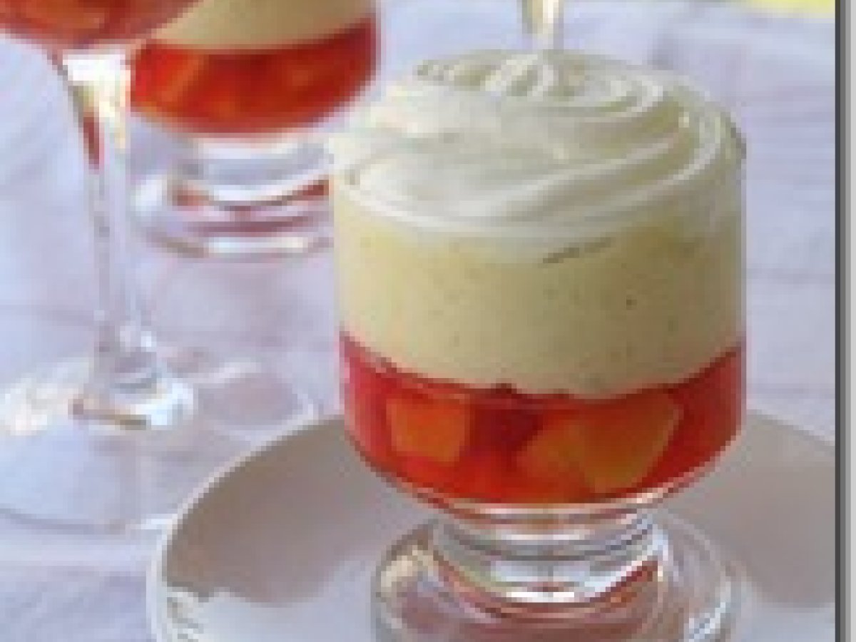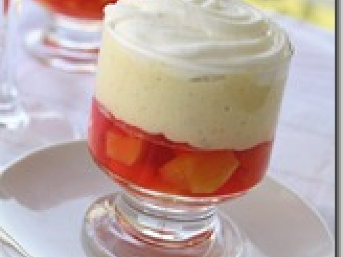 Pudding anglais à la gelée de mangue PrécédentSuivant Dessertmoyen45 min Envoyer cette recette à un ami Imprimer cette page Poser une question à l'auteur Publier votre photo de cette recette Ingrédients 6 3 feuilles de gélatine 5 cl de grenadine 1 mangue mûre et fruitée 25 cl de lait Un ½ bâton de vanille 3 oeufs 40 g de sucre 15 g de farine 2 cuillères à café de kirsch 1 petite génoise ou un biscuit moelleux 15 cl de crème liquide entière
