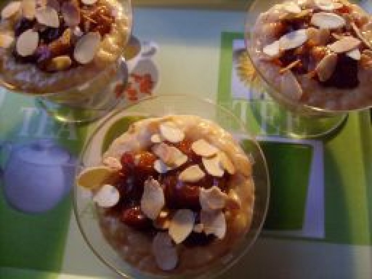Riz au lait concentré non sucré et sa compotée de mirabelles