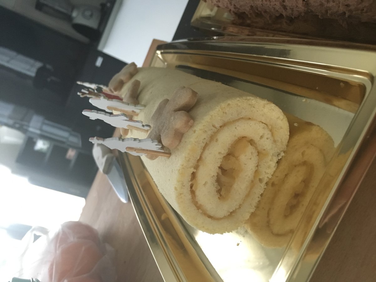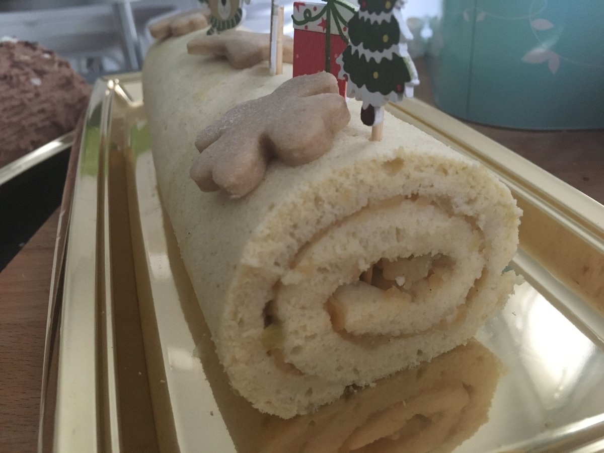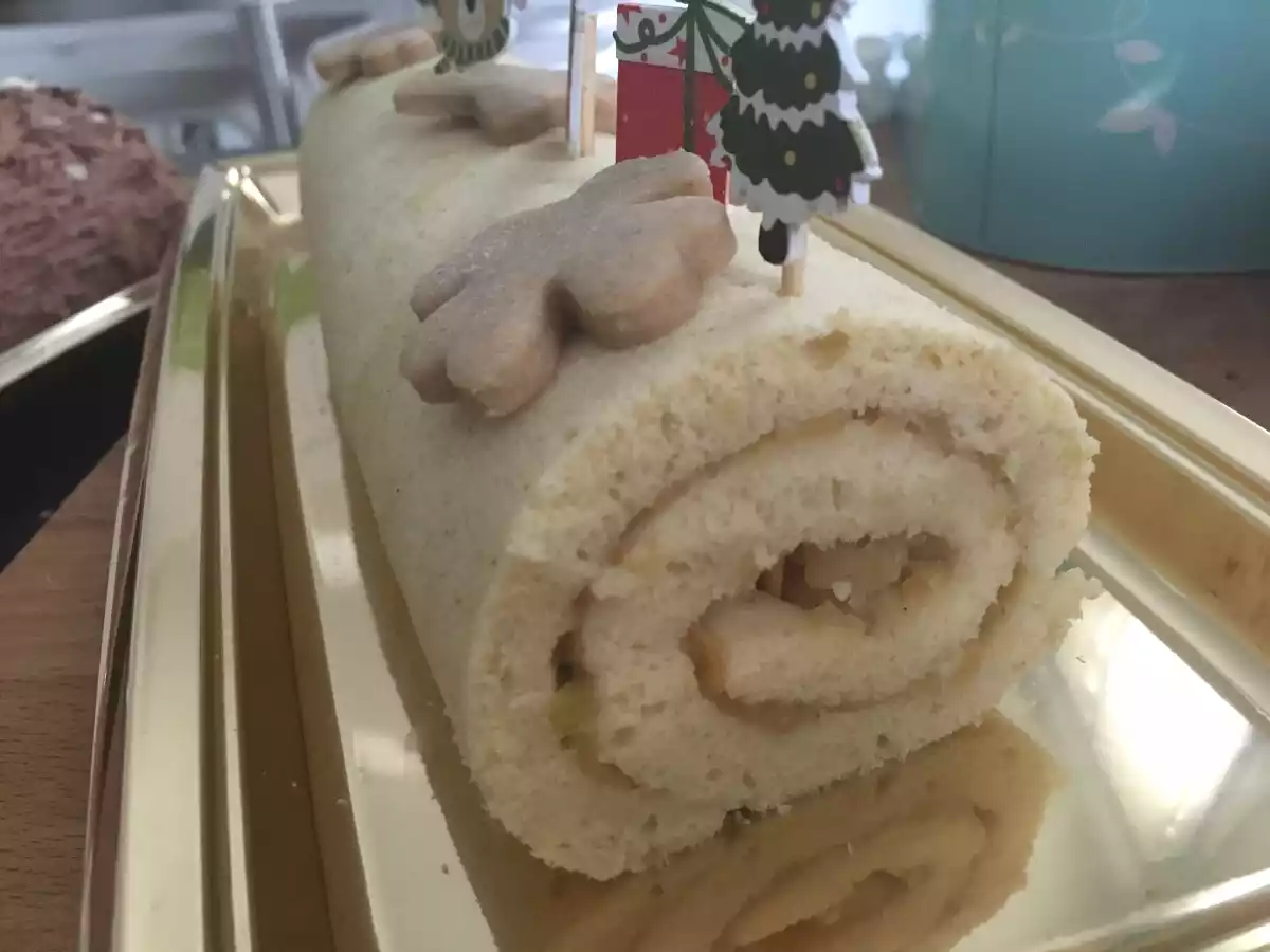 Génoise roulée avec une compote de pommes légère et sans beurre avec du sucre de stévia