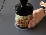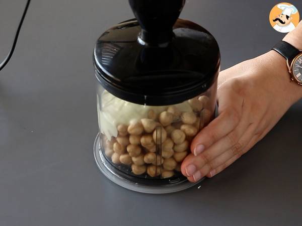 Mixer les noisettes grillées émondées (voir observations) avec le chocolat blanc fondu jusqu'à obtenir une crème homogène.