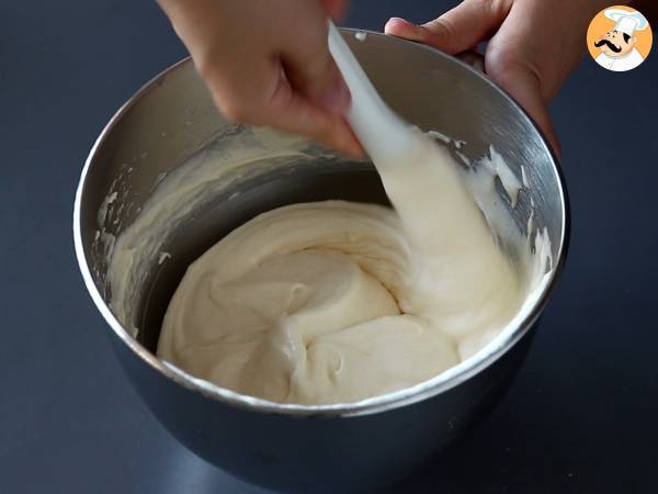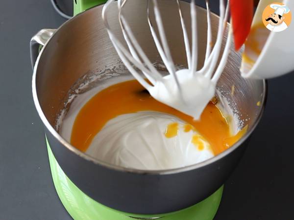 Ajouter ensuite les jaunes d'œuf et l'extrait de vanille et bien fouetter pour obtenir un mélange bien aérien.