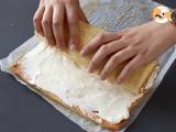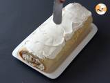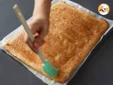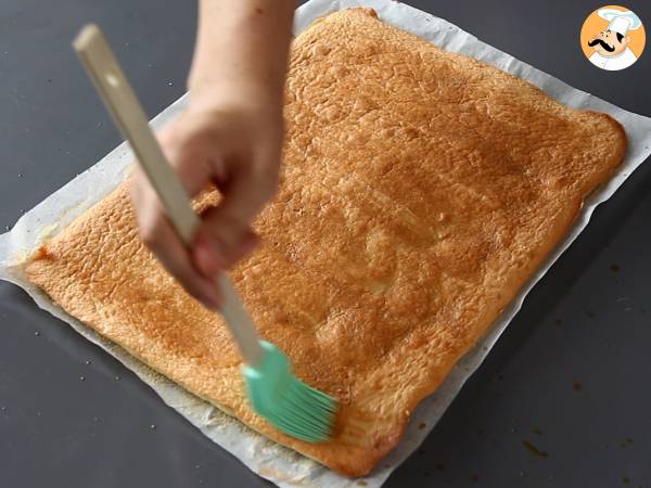 Rouler la génoise doucement et la transférer sur le plat qui servira pour le service.