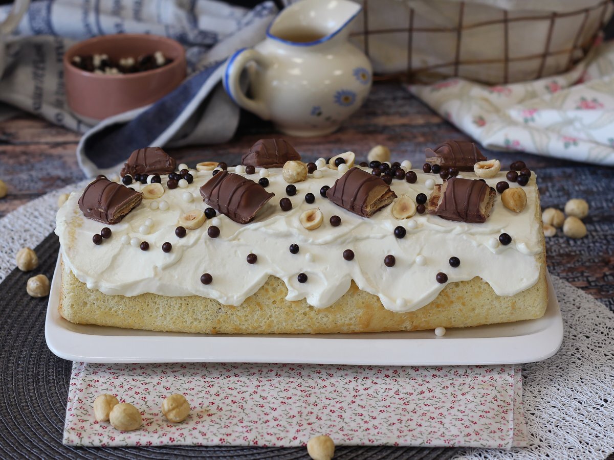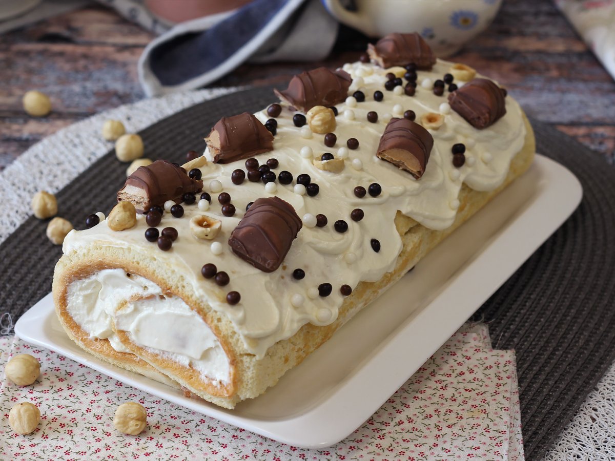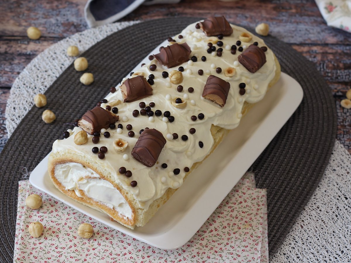 Roulé facile goût kinder bueno, parfait comme gâteau d'anniversaire ou comme bûche pour noël!