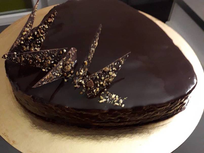 Gâteau presque parfait... Je n'ai pas réussi le croustillant praliné : la pâte n'est jamais apparue mais le glaçage est parfait, pas trop plastique du tout. Un régal pour les yeux et les papilles ! Merci.