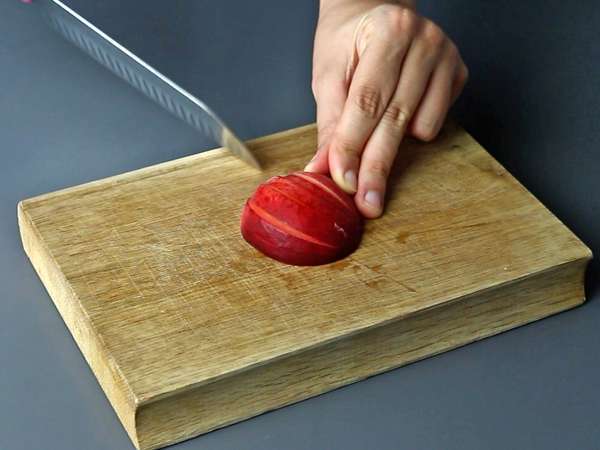 Couper la pêche, le brugnon et les abricots en tranches fines.