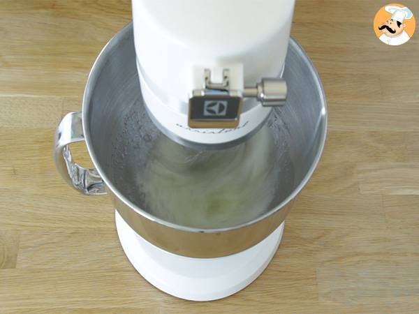 Battre jusqu'à ce que la meringue forme des pics lorsqu'on soulève le fouet.