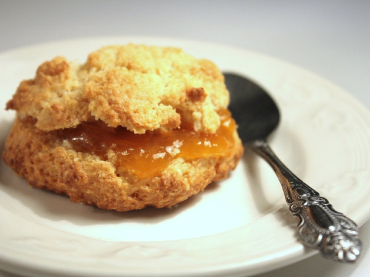Scones fondants avec un sablé au bon goût de beurre, fourré à la confiture d'abricots
