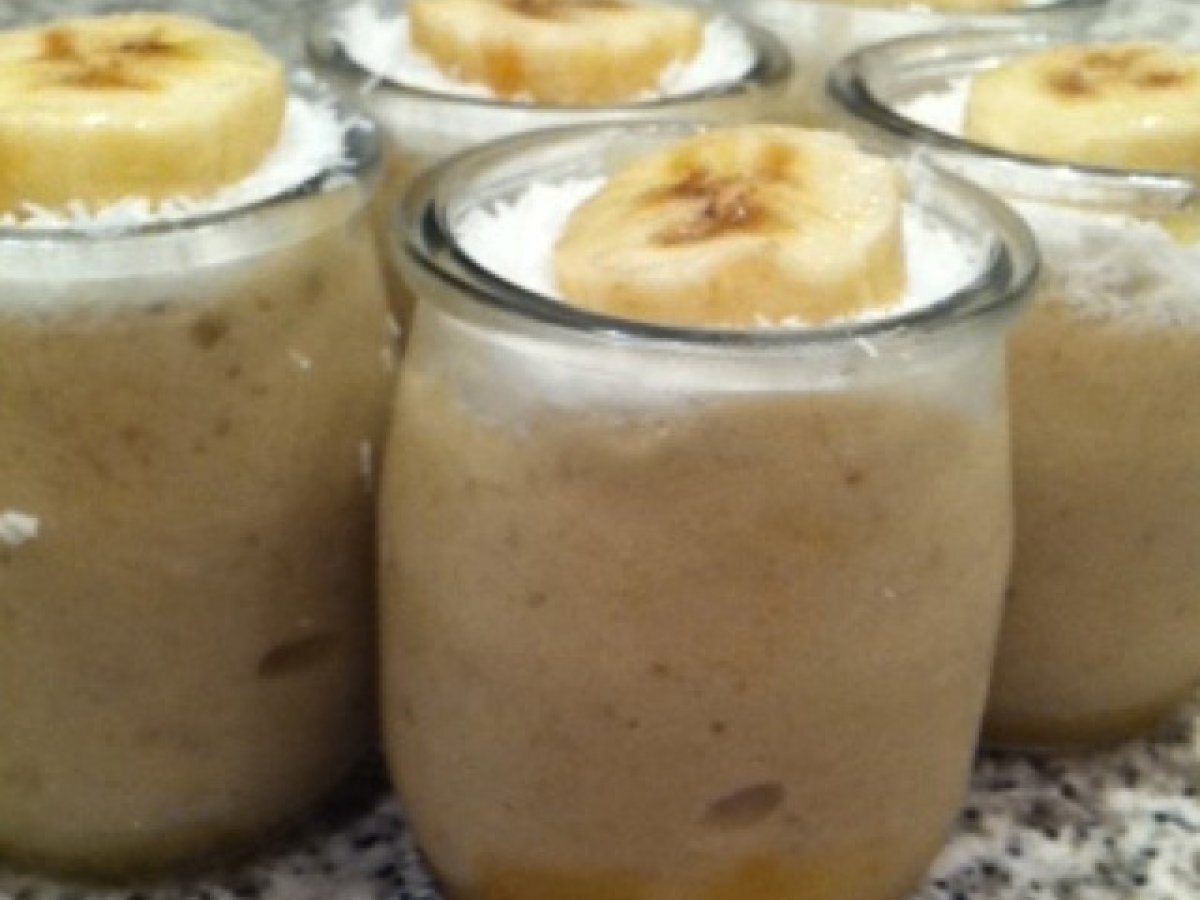 Smoothie glacé à la banane accompagné de coco et miel (régime!)