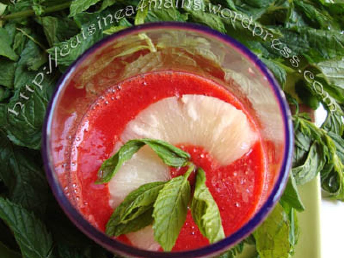 Soupe de fraise,menthe et ananas Dessertfacile10 min Envoyer cette recette à un ami Imprimer cette page Poser une question à l'auteur Publier votre photo de cette recette Ingrédients 4 500 g de fraises 1 cuillère à soupe de sucre le jus d’1/2 orange 1 boite d’ananas quelques feuilles de menthe fraiche