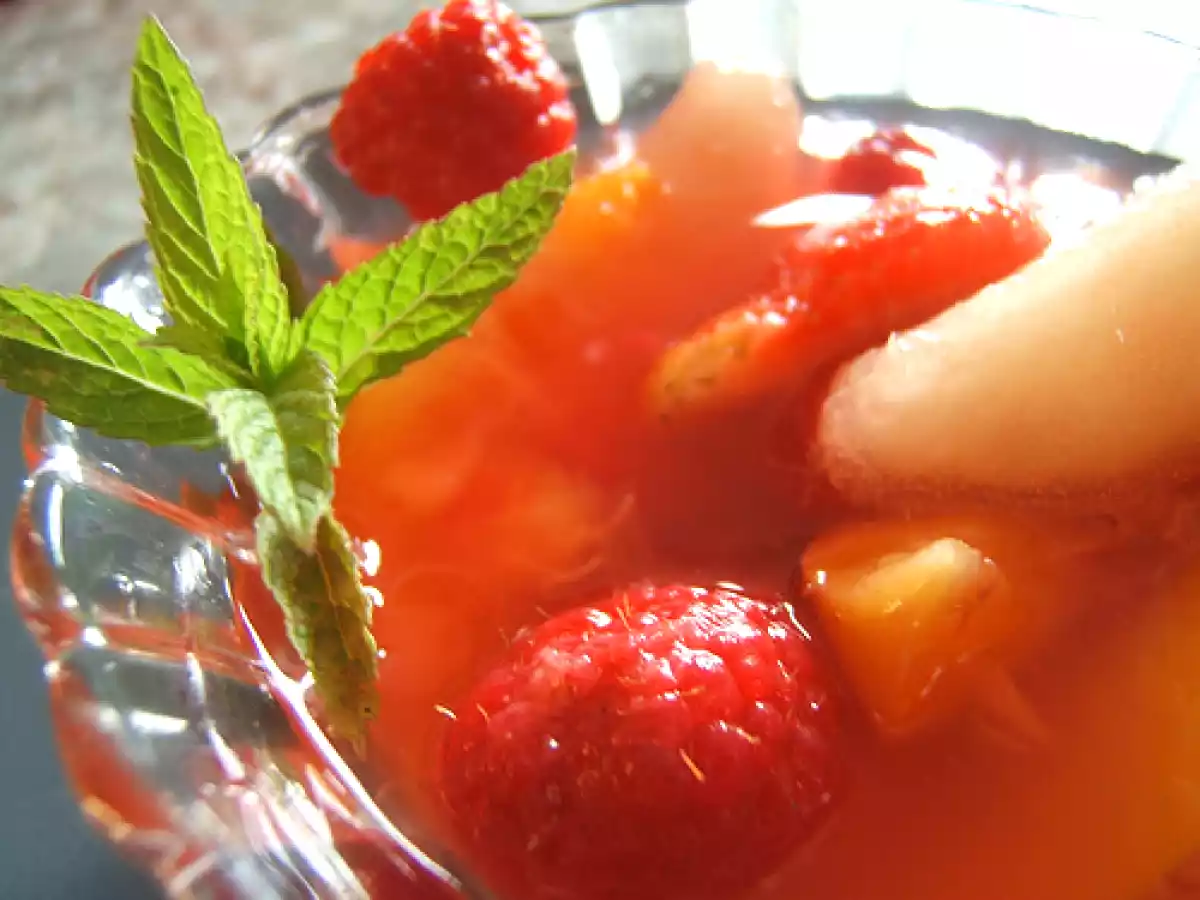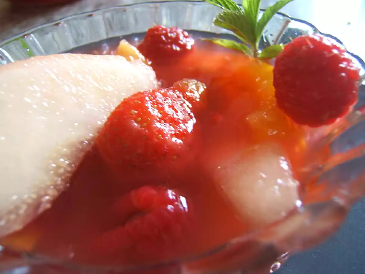 Tout simplement divin !! Frais, léger, parfumée, colorée, bref à déguster sans modération !! Son discret parfum menthe ajoute une note exotique à cette coupe de fruits.