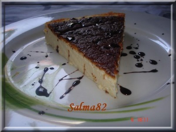 Une tarte espagnol qui est un peu lourd mais très savoureux avec le goût et parfum de vanille tellement bon! ... Vous pouvez le servir en dessert ou même en petit déjeuner. Pas mal!