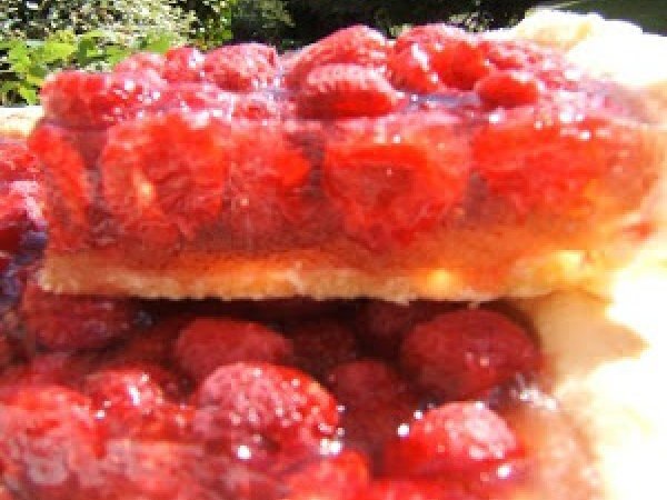 Tarte à la framboise à la gelée de cidre sur une pâte sucrée aux feuilles de citronnelle: