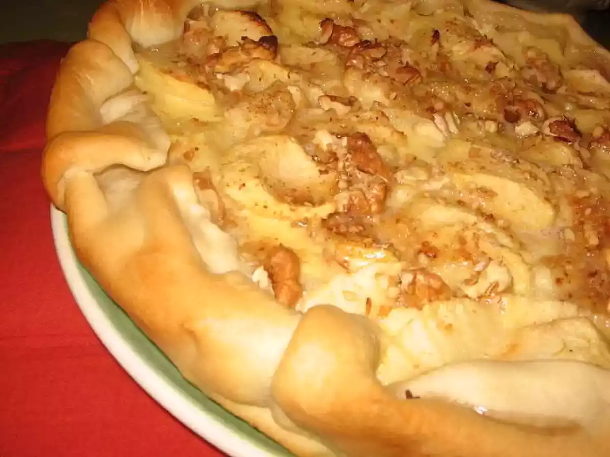 Tarte aux pommes et au cantal votez maintenant Dessertfacile45 min Envoyer cette recette à un ami Imprimer cette page Poser une question à l'auteur Publier votre photo de cette recette Ingrédients 6 Une pâte brisée 1 morceau de Cantal (200 g) 1 oeuf 2 cuillères à soupe de sucre roux 250 g de crème fraîche 4 pommes pelées et tranchées 1 poignée de noix grossièrement concassées 2 cuillères à soupe de pralin 1 cuillère à soupe de sucre roux