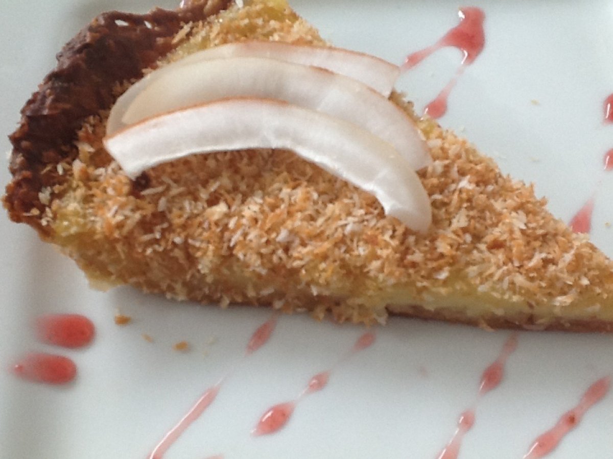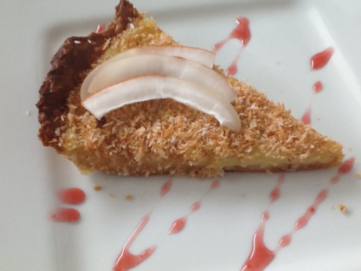 Pour cette tarte mélange de lait de coco et rhum de la Réunion pour mettre un peu de soleil dans votre grisaille.