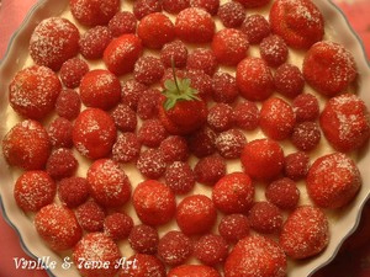 Une vraie tarte au mascarpone.Un véritable délice, légère, parfumée, onctueuse... Mmmmm ...